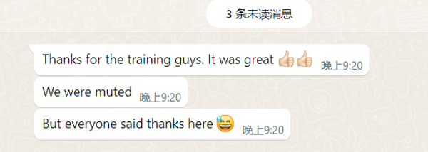 “为了兼顾各个国家的时间,我们把培训安排在了北京时间20点至21点。”美仪外贸部运营负责人 Joyce 透露,从后续反馈来看,客户对培训内容的丰富度、专业度、实用性给予了高度认可,并表达了强烈的深度合作意向。